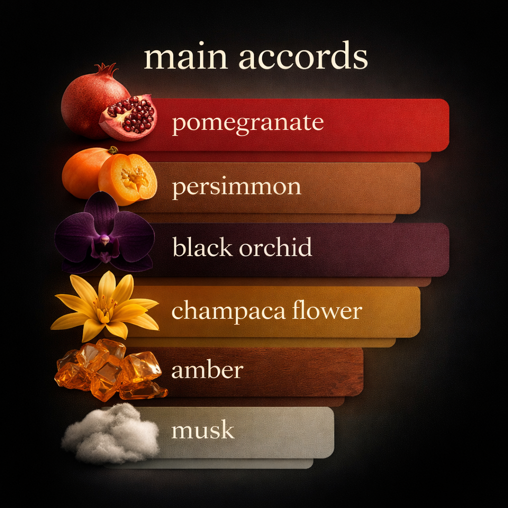 A vibrant unisex fragrance with fruity pomegranate, floral orchid, and warm amber notes for a fresh, sweet, and long-lasting scent.
